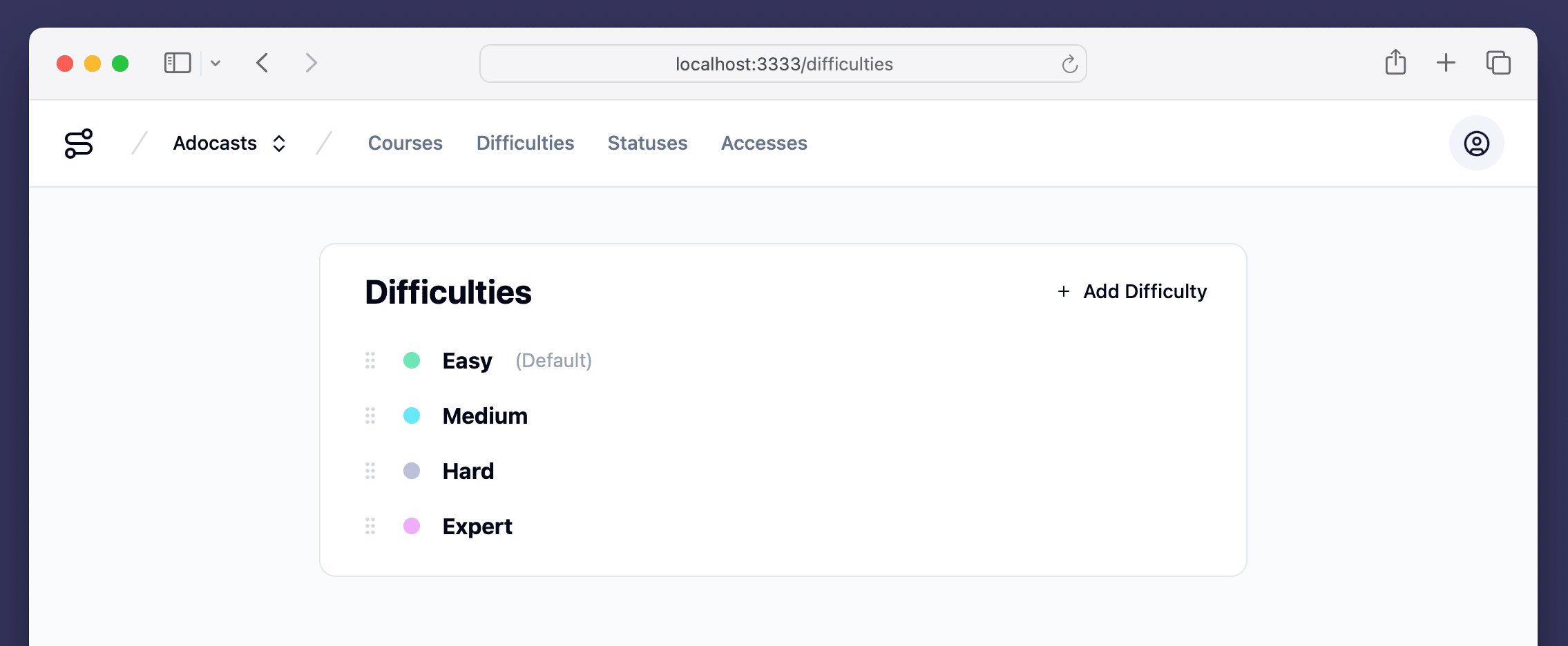 PlotMyCourse Difficulty Management Page